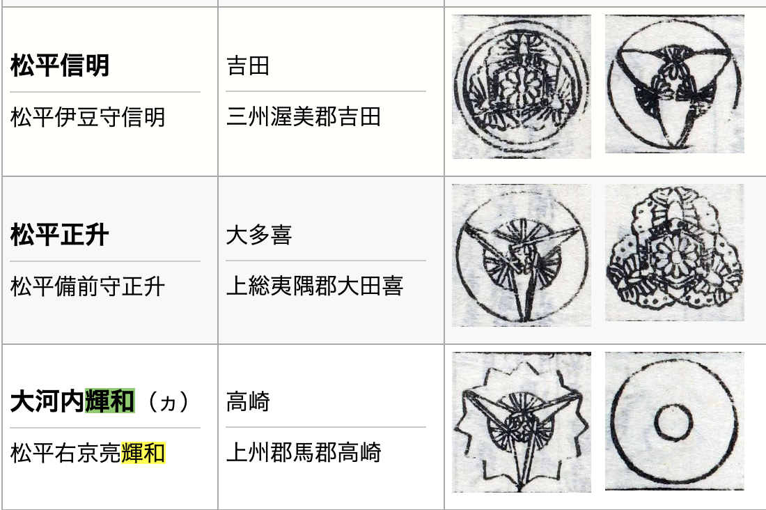 それに付け加え、松田勝慶の流れでの松平正綱を始祖とする大河内松平宗家、